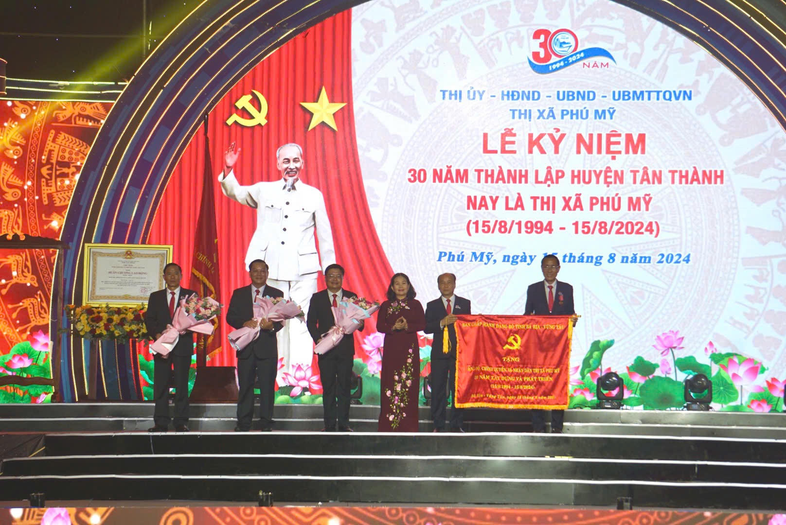 Phát biểu tại lễ kỷ niệm, ông Nguyễn Văn Việt - Bí thư thị uỷ TX Phú Mỹ, đã ôn lại những dấu mốc quan trọng trong lịch sử của địa phương sau 30 năm hình thành và phát triển. Thị xã được thành lập từ huyện Tân Thành theo Nghị định số 45/CP ngày 2/6/1994 và được nâng cấp thành thị xã vào năm 2018.
