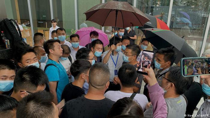 Các nhà đầu tư tập trung trước trụ sở chính của Evergrande yêu cầu hoàn lại tiền hôm 21/9/2021. Ảnh: AFP |