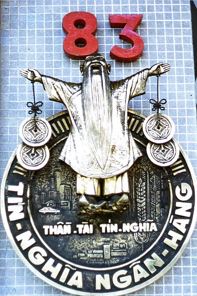 Trong thời gian đó, ông Đời còn nghĩ ra và thực hiện dấu hiệu cho Ngân hàng: Gương mặt đạo hạnh của một vị thần tượng trưng cho thịnh vượng (Thần Tài). Đối với đa số người Việt bình dân, dấu hiệu này tượng trưng cho sự giàu sang phú quý theo như mê tín và tín ngưỡng mà họ đã có từ lâu đời. Còn đối với nhiều khách hàng tương lai thì dấu hiệu này làm cho họ thêm tin cậy vào Tín Nghĩa.