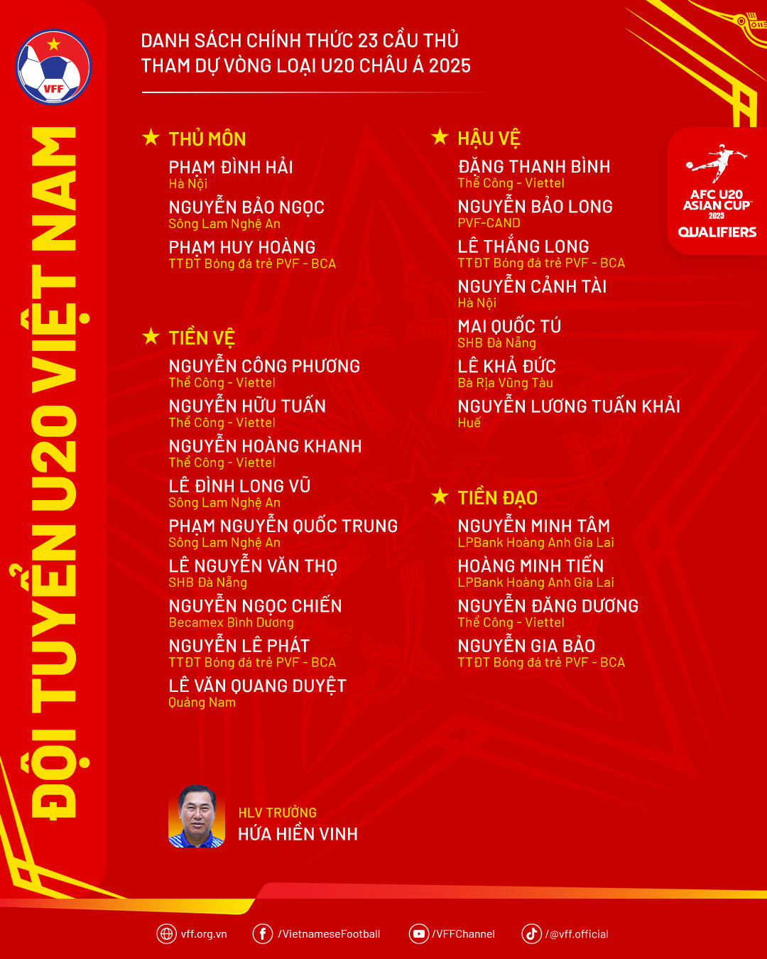 Trên cương vị đội chủ nhà, HLV trưởng đội tuyển U20 Việt Nam cho biết U20 Việt Nam sẵn sàng cho giải đấu. “Với lợi thế sân nhà, chúng tôi đặt mục tiêu sẽ cống hiến cho khán giả những màn trình diễn hay và cố gắng giành nhiều điểm số để góp mặt tại vòng chung kết U20 châu Á 2025. Qua giải đấu này, chúng tôi cũng muốn học hỏi và trao dồi thêm kinh nghiệm trận mạc khi đấu với nhiều đội tuyển ở châu Á”, HLV Hứa Hiền Vinh chia sẻ.