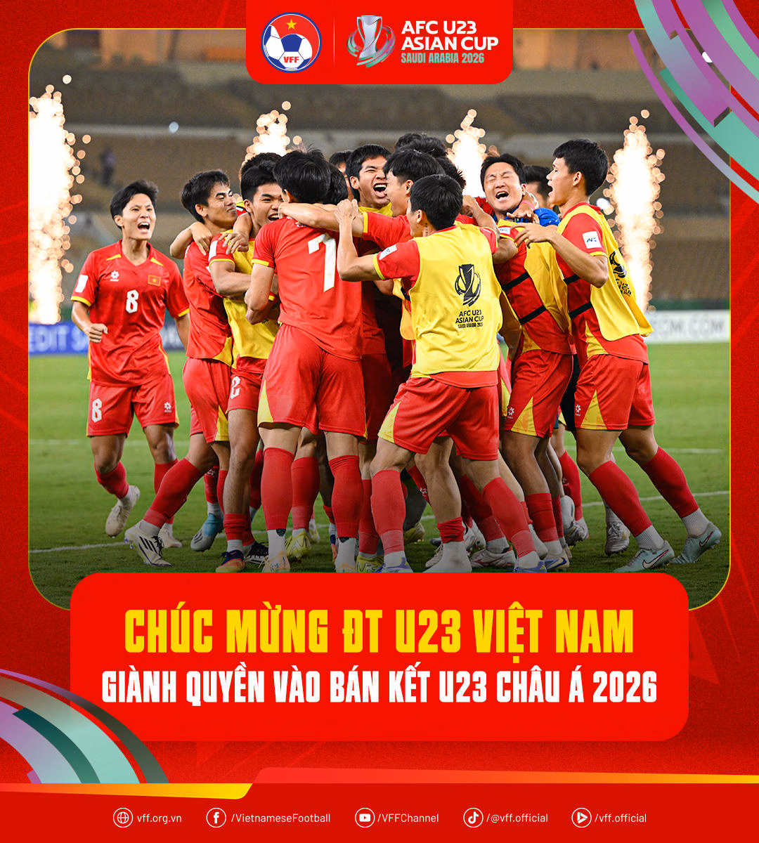 Đội tuyển U23 Việt Nam đã tạo nên một trận đấu giàu cảm xúc tại Tứ kết vòng chung kết U23 châu Á 2026 khi vượt qua U23 UAE với tỷ số 3-2 sau hai hiệp phụ, qua đó giành quyền vào vòng Bán kết và tiếp tục viết nên dấu ấn lịch sử cho bóng đá Việt Nam ở đấu trường châu lục.