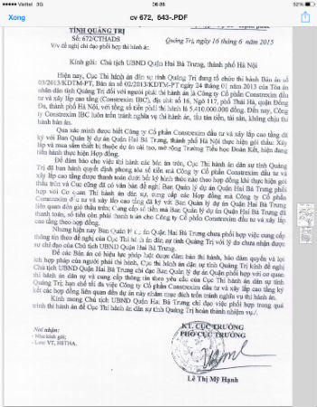Đến nay Cty Constrexim IBC luôn trốn tránh nghĩa vụ, không chịu THA. Qua xác minh được biết Cty Constrexim IBC đã ký với BQL dự án quận Hai Bà Trưng thực hiện gói thầu xây lắp và mua sắm thiết bị thuộc dự án cải tạo mở rộng Trường Trung học Đoàn Kết, hiện đang thực hiện hợp đồng. Cục THADS tỉnh Quảng Trị kính đề nghị Chủ tịch UBND quận Hai Bà Trưng chỉ đạo BQL dự án quận phối hợp với Cục THADS tỉnh Quảng Trị cung cấp thông tin theo yêu cầu của Cục để có cơ sở bảo đảm việc THA, thực thi bản án đúng quy định của pháp luật.