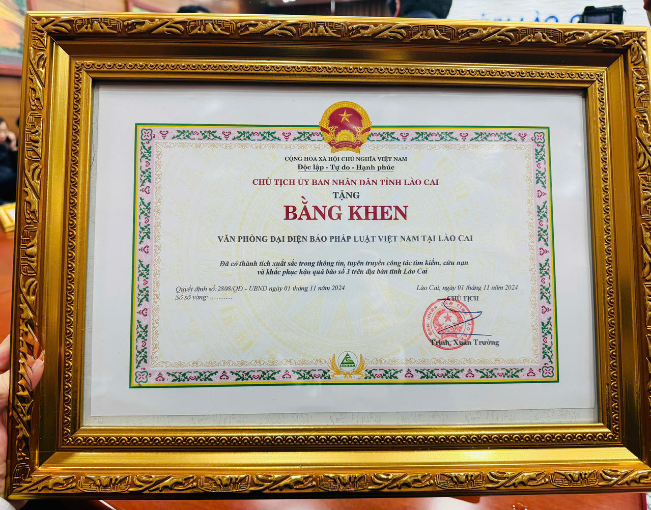 Đại diện Báo Pháp luật Việt Nam nhận bằng khen của Chủ tịch UBND tỉnh Lào Cai |