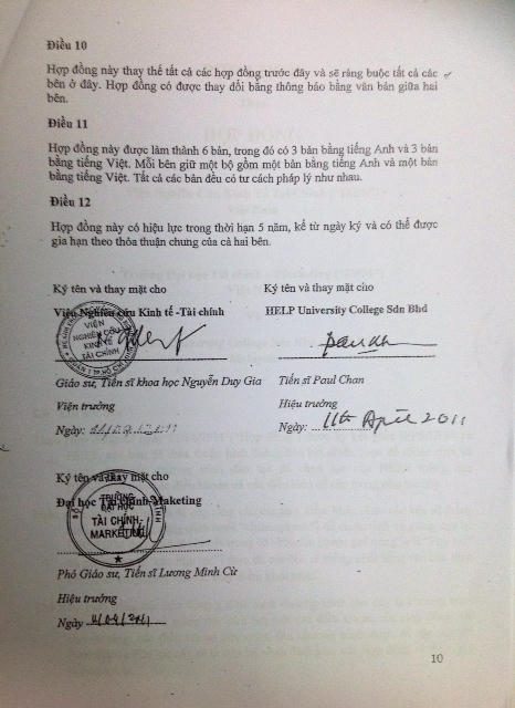 “Thoả thuận về chương trình đào tạo giữa các bên có hiệu lực trong thời gian 5 năm (tính từ 2011). Tôi không rõ những thoả thuận ngầm đằng sau bản hợp đồng đó là gì, chỉ thấy rất rõ trên thực tế việc họ đã vi phạm địa điểm đào tạo. Cụ thể, giấy phép của Bộ GDĐT yêu cầu phải đặt tại UFM, nhưng họ vẫn ngang nhiên đặt cơ sở đào tạo tại Học viện Hành chính Quốc gia tọa trên đường 3/2, quận 10, TP.HCM để thực hiện việc giảng dạy.” - một cán bộ của trường này bức xúc.