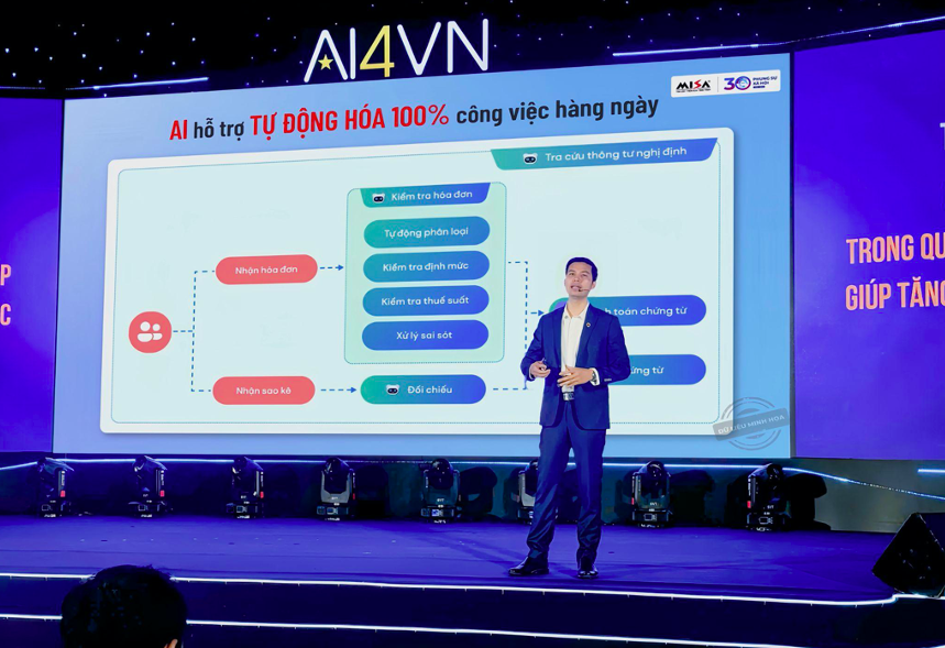 Đại diện MISA chia sẻ về luồng quy trình AI hỗ trợ tự động hóa 100% công việc hàng ngày. |