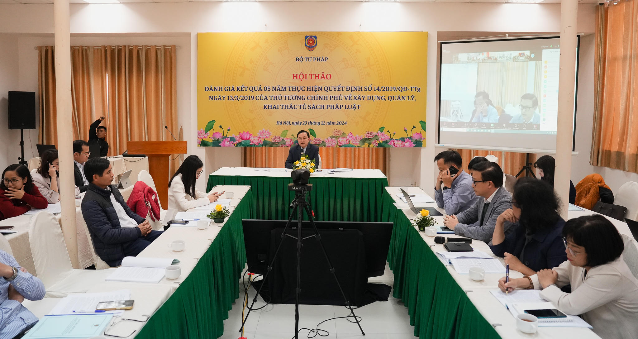 (PLVN) -Ngày 23/12, Cục Phổ biến, giáo dục pháp luật, Bộ Tư pháp đã tổ chức Hội thảo đánh giá kết quả 05 năm thực hiện Quyết định số 14/2019/QĐ-TTg ngày 13/3/2019 của Thủ tướng Chính phủ về xây dựng, quản lý, khai thác tủ sách pháp luật (TSPL). Phó Cục trưởng Cục Phổ biến, giáo dục pháp luật Phan Hồng Nguyên chủ trì Hội thảo.