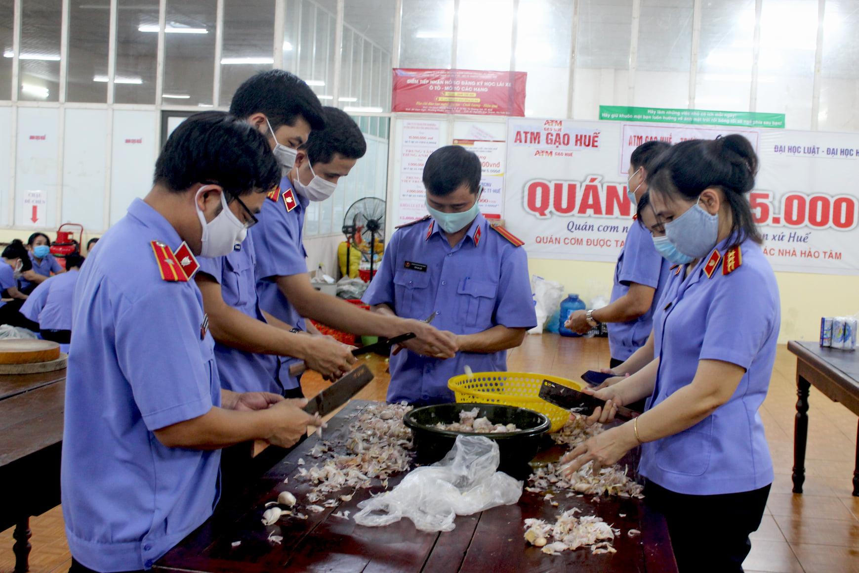 Thời gian gần đây, ngoài thực hiện tốt nhiệm vụ chuyên môn, ngành KSND Thừa Thiên Huế còn tích cực thực hiện chính sách xã hội, đền ơn đáp nghĩa; đặc biệt đã đồng hành trong công tác phòng chống dịch COVID-19 với nhiều hình thức phong phú, thiết thực như chung tay chuẩn bị những suất ăn sáng cho bà con bên trong khu cách ly. Mỗi tuần cán bộ, công chức VKSND hai cấp sẽ luân phiên tham gia việc sơ chế, chuẩn bị bữa ăn sáng cho bà con vào các buổi tối thứ 2 và thứ 5 hàng tuần.