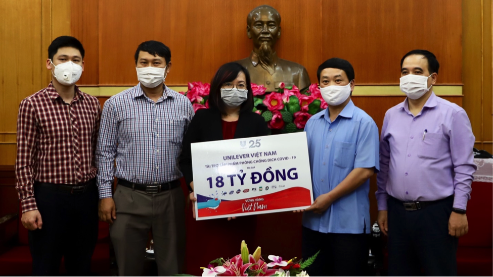 Đại diện công ty trao tặng tượng trưng gói hỗ trợ sản phẩm trị giá 18 tỷ đồng cho đại diện MTTQ, bà Nguyễn Thị Hồng Nhi, Trưởng phòng cấp cao Bộ phận Phát triển bền vững & Truyền thông đối ngoại, Unilever Việt Nam cho biết: "Là một công ty đã đồng hành cùng người tiêu dùng Việt Nam suốt 25 năm qua, với sứ mệnh “Nâng tầm cuộc sống, Kiến tạo tương lai”, Unilever hiểu rằng việc giữ gìn vệ sinh cá nhân và môi trường sống là điều kiện tiên quyết để phòng ngừa sự lây lan của dịch bệnh Covid-19.