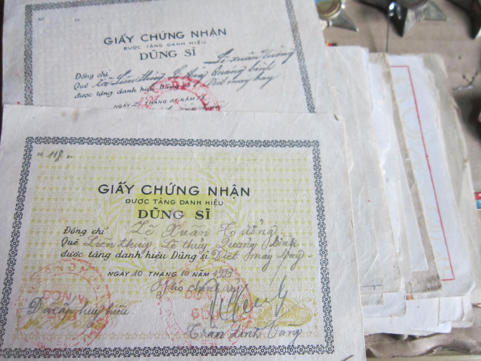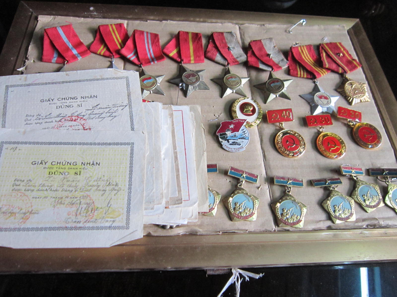 Người vợ nhẩm đếm những phần thưởng ông đã nhận: 6 huy hiệu dũng sĩ diệt máy bay, 5 lần được tặng huân chương chiến công hạng nhì và hạng 3, 1 huân chương kháng chiến hạng ba, 2 huân chương giải phóng hạng nhì và hạng 3, 3 huân chương chiến sĩ vẻ vang hạng nhất, hạng hai và hạng 3; 1 dũng sĩ quyết thắng, 3 bằng khen giải phóng Quảng Trị (1972- 1973), 2 bằng khen chiến sĩ thi đua, 1 huy hiệu chiến thắng Quảng Trị, 1 huy hiệu toàn thắng, 2 bằng khen trong huấn luyện.