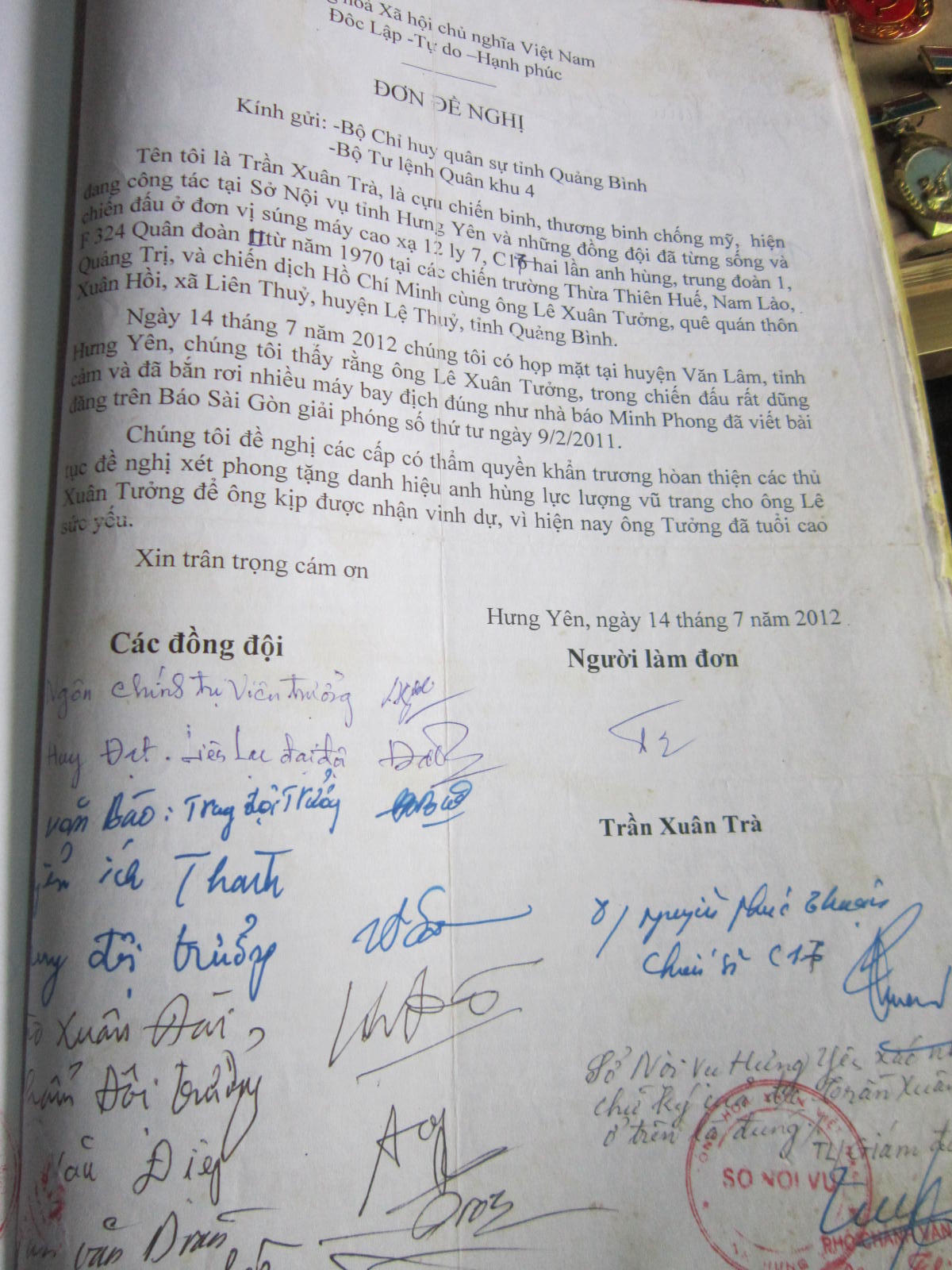 Tụi tui, gia đình hối thúc mãi ổng mới chịu làm hồ sơ xin được Nhà nước công nhận là Anh hùng lực lượng vũ trang nhân dân. Suốt gần chục năm trời hồ sơ chưa được xét duyệt thì ổng qua đời. Đến nay con cháu ổng không theo được nữa nên hồ sơ vẫn còn “nằm chờ”. Tụi tui ai cũng tiếc nuối”.