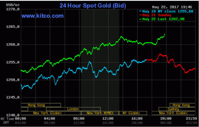 Ở thời điểm cập nhật lúc 7h00 sáng theo giờ Việt Nam, giá vàng giao ngay đang ở mức 1.262,90 USD/ounce, tăng so với mức chốt phiên hôm thứ Sáu tuần trước là 1.255,60 USD/ounce.