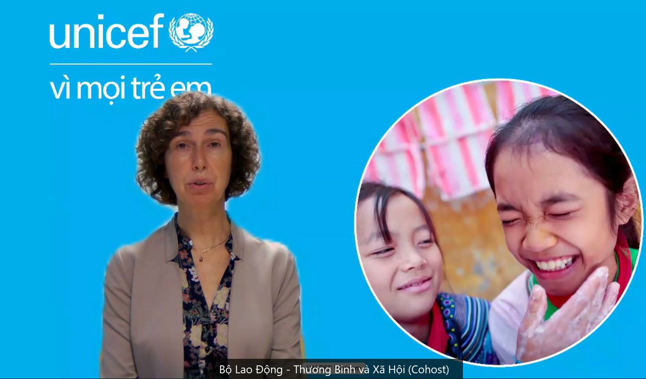 | Đại diện UNICEF phát biểu tại hội nghị trực tuyến về trẻ em của Bộ LĐ-TB&XH. |
