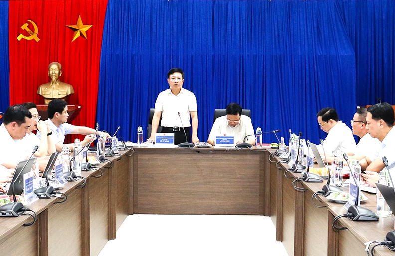 Phó Chủ tịch Ủy ban Quản lý vốn Hồ Sỹ Hùng (đứng) đề nghị EVN đẩy nhanh hơn nữa tiến độ của dự án |