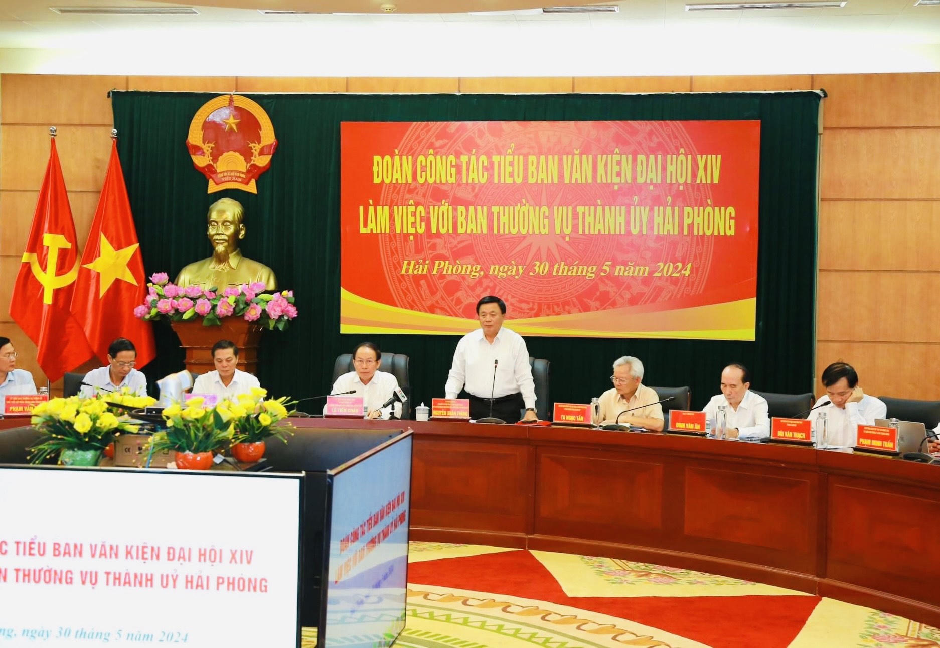 Ngày 30/5, Đoàn công tác Tiểu ban Văn kiện Đại hội XIV của Đảng do ông Nguyễn Xuân Thắng, Ủy viên Bộ Chính trị, Chủ tịch Hội đồng Lý luận Trung ương, Giám đốc Học viện Chính trị Quốc gia Hồ Chí Minh, Thường trực Tiểu ban Văn kiện, Tổ trưởng Tổ biên tập Văn kiện Đại hội XIV làm Trưởng đoàn, làm việc với TP Hải Phòng.