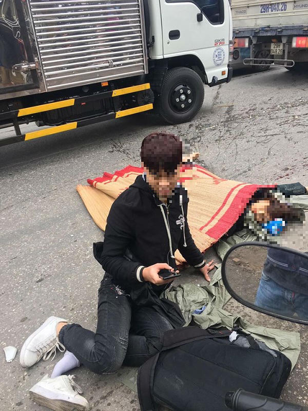 Tại hiện trường, cô gái nằm bất tỉnh ngay tại chỗ và bị thương rất nặng khiến nhiều người dân tưởng nạn nhân này đã tử vong nên dùng chiếu đắp. Còn bên cạnh là nam thanh niên vật vã kêu đau đớn bên chiếc xe máy cùng đồ đạc lỉnh kỉnh, kêu gọi mọi người xung quanh giúp đỡ.