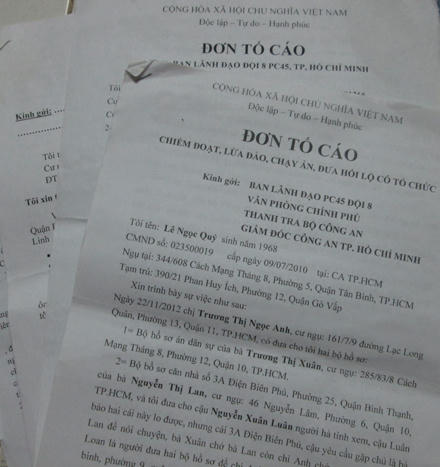 (PLO) - Trong đơn tố giác tội phạm gửi đến Công an TP.HCM, bà Trương Thị Ngọc (SN 1959, ngụ phường 15, quận 10) tố Nguyễn Xuân Luân (SN 1972, ngụ phường Thạch Linh, TP Hà Tĩnh, tỉnh Hà Tĩnh) đã mạo danh công an, “cháu của Phó Thủ tướng” để lừa đảo chiếm đoạt hơn 4 tỉ.