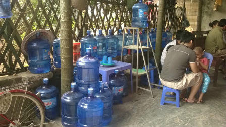 Cứ thế, mỗi người bệnh đến “phòng khám” ít nhất phải mua 2 bình nước loại 5l mang về. Uống hết thì quay lại mua y hệt bốc thuốc. Chỉ cần làm phép tính nhẩm 25 ngàn đông/bình nước 5l, thì với hàng chục m3 nước bán mỗi ngày, “thần y” Định đút túi vài triệu đồng, thậm chí nhiều hơn.