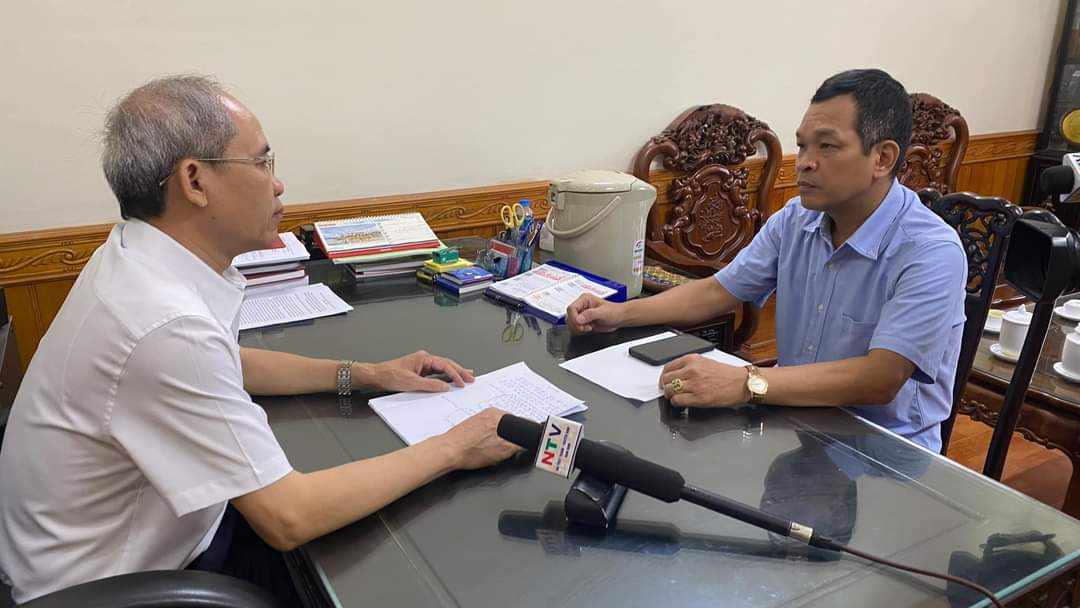 Ông Đoàn Văn Hùng (áo trắng), Chủ tịch Ủy ban MTTQ tỉnh Nam Định trả lời phỏng vấn Đài PTTH tỉnh Nam Định. (Ảnh: Vũ Hà) |