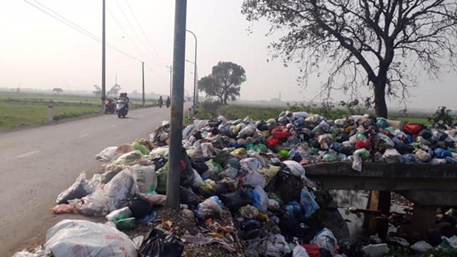 Không chỉ ở đô thị, nhiều vùng ngoại thành của Thủ đô Hà Nội, việc thu gom rác gặp nhiều khó khăn. Nhiều bãi tập kết rác quá tải, dồn ứ. Như tại địa bàn xã Ninh Sở (huyện Thường Tín), hàng trăm tấn rác còn ứ đọng ở bãi tập trung lộ thiên. Người dân vẫn tiếp tục bỏ rác ở đây dẫn đến chuyện rác lấn ra kênh mương, lề đường, gây ô nhiễm môi trường.