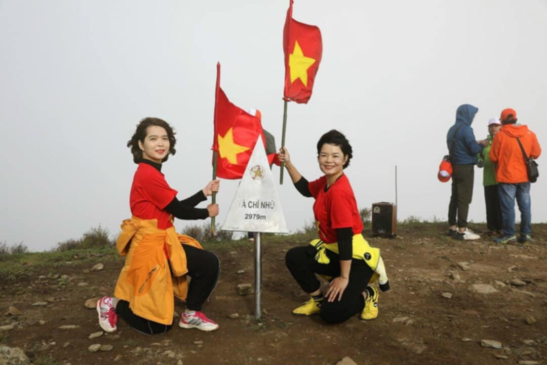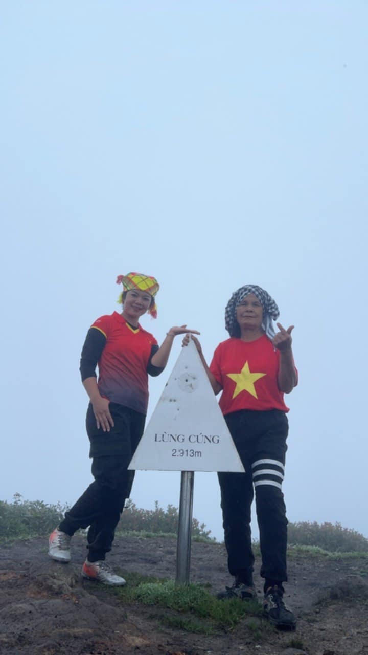 Chị Oanh và mẹ chinh phục đỉnh Lùng Cúng nhân chào mừng sinh nhật 70 tuổi của mẹ chị. |