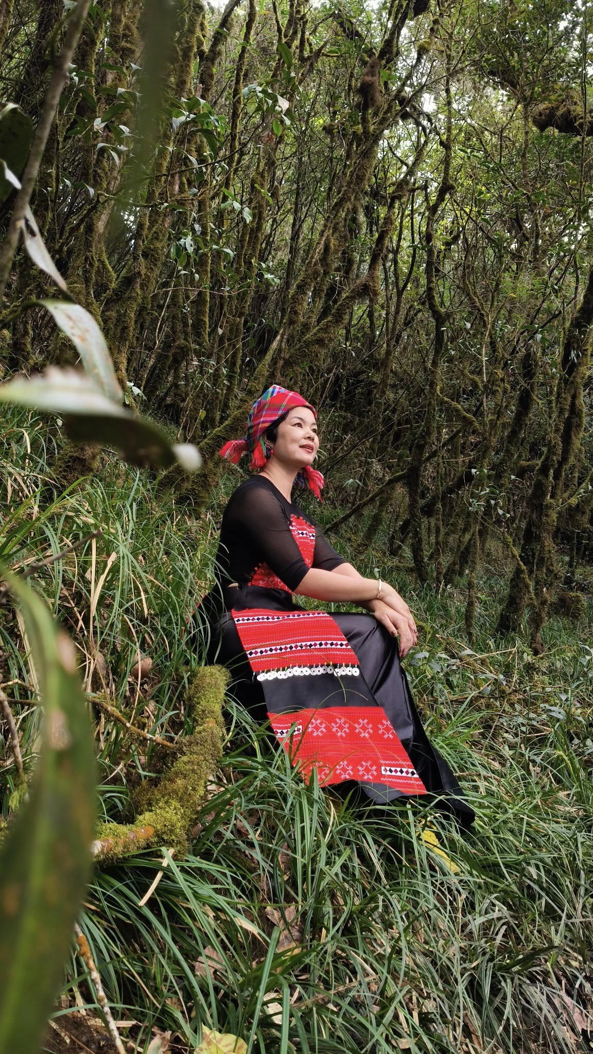 Chia sẻ về lựa chọn trang phục, chị nói: “Với thiết kế của nhà thiết kế Phương Linh, chất liệu co giãn rất dễ chịu, tôi không gặp khó khăn khi chinh phục đỉnh cao. Hơn nữa, tôi muốn chụp bộ ảnh này trên đỉnh núi, để du khách hiểu rằng chặng đường leo núi không quá vất vả, và tôi muốn tô điểm thêm cho những vẻ đẹp tuyệt vời của quê hương mình.”