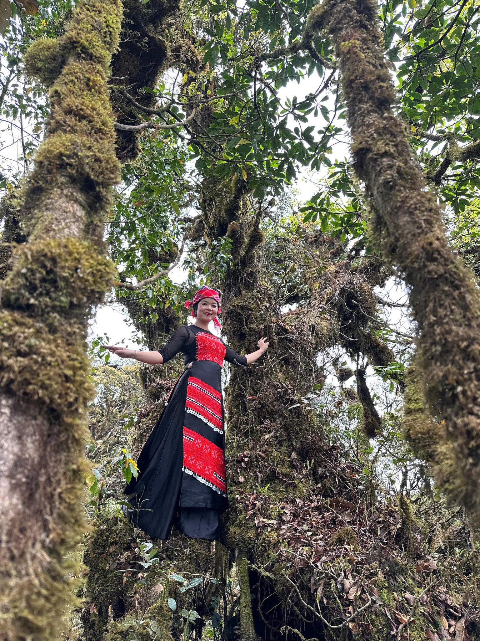 Mai Oanh chia sẻ, chị đã từng mặc áo dài trong rừng rêu Tà Xùa ở lần đầu tiên chinh phục đỉnh cao này. Phong cảnh đẹp như cổ tích khiến chị không thôi mơ ước được thêm thật nhiều lần ghi lại những cảnh đẹp ở nơi này.