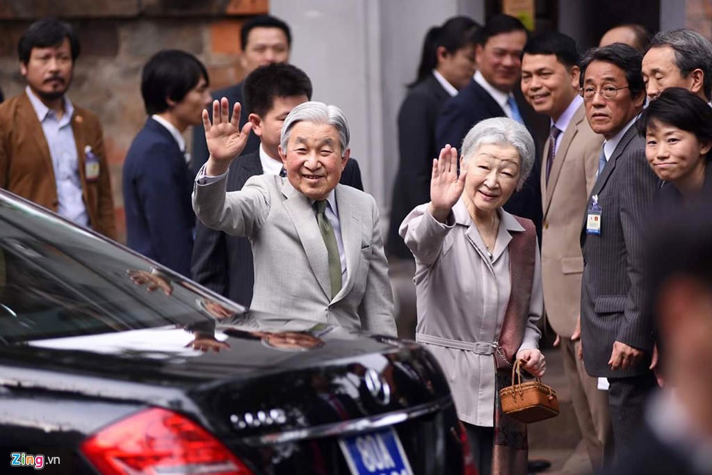 Hình ảnh về Vua và Hoàng hậu Nhật bản do Zing.vn và VietNam+ ghi nhận tại Văn Miếu - Quốc Tử Giám, sáng nay, 2/3:
