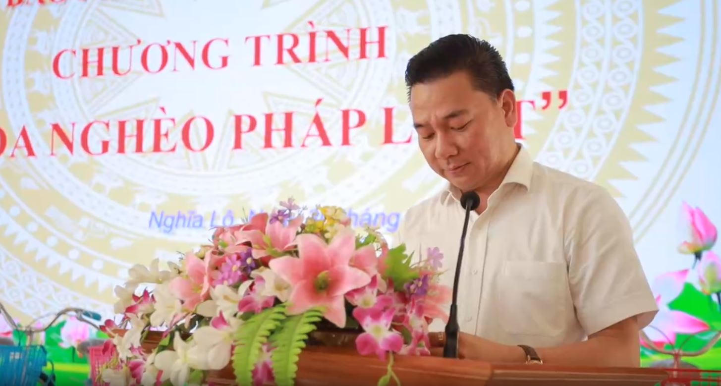 Về dự chương trình “Xoá nghèo Pháp luật” có sự góp mặt của: Bà Đỗ Thị Thanh Nga – Phó Bí thư Thị uỷ, Chủ tịch UBND thị xã Nghĩa Lộ; ông Lương Mạnh Hà - Ủy viên Ban thường vụ Thị ủy, Phó Chủ tịch thường trực UBND Thị xã; ông Lò Văn Vi – Uỷ viên ban thường vụ Tỉnh ủy, Chủ tịch Ủy ban Mặt trận Tổ Quốc, trưởng ban Dân vận thị xã; bà Lò Thị Ánh Nguyệt – Uỷ viên Ban thường vụ Tỉnh ủy, Trưởng Ban Tuyên giáo, Giám đốc Trung tâm Chính trị thị xã; nhà báo Vũ Đình Tiến - Trưởng đại diện Văn phòng phía Bắc Báo Pháp luật Việt Nam tại Phú Thọ. Ngoài ra, còn có sự hiện diện của các đại biểu trong Đảng ủy, HĐND, UBND, MTTQ và các đoàn thể đến tham dự chương trình.