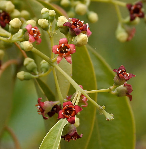 Chùm hoa cùng nụ hoa đỏ của đàn hương trắng Ấn Độ
