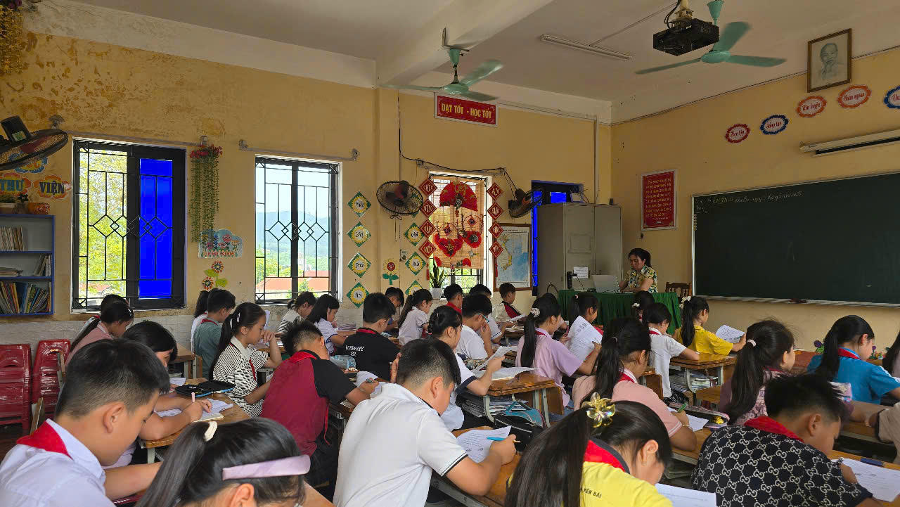 | Cô trò lớp 4 trường Tiểu học Thị Trấn Mậu A, Văn Yên, Yên Bái |