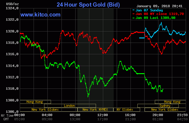 Tới đầu giờ sáng 10/1 (giờ Việt Nam), giá vàng thế giới giao ngay đứng ở mức 1.314 USD/ounce. Giá vàng giao tháng 2 trên sàn Comex New York đứng ở mức 1.315,8 USD/ounce.