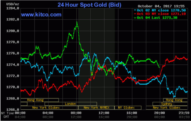 Số liệu cho thấy chỉ số ngành dịch vụ ISM (Viện Quản lý Nguồn cung) của Mỹ tăng lên 59,8% trong tháng 9 - mức cao nhất kể từ giữa năm 2005. Phiên thứ Ba, vàng giảm giá gần 0,1% về mức 1.274,60 USD/ounce – mức thấp nhất kể từ 8/8.