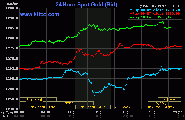 Đầu giờ sáng nay (giờ Việt Nam), giá vàng thế giới tăng khoảng 10 USD lên 1.283,7 USD/ounce. Các hợp đồng giao tháng 12 cũng chốt quanh mức 1.290,5 USD, tăng khoảng 11,3 USD so với phiên liền trước.
