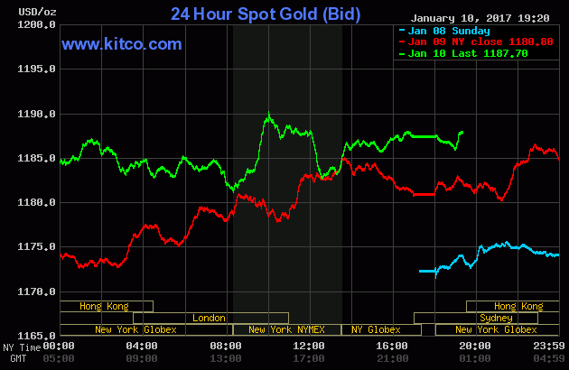 Sáng nay 7:00 theo giờ Việt Nam, giá vàng giao ngay trên sàn Kitco đứng tại 1.187,7USD/oz, tăng 0,6% so với chốt phiên trước.