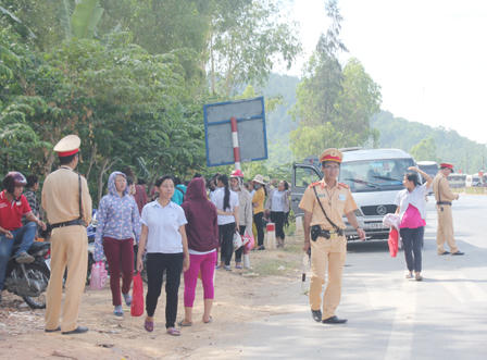 Sáng nay, lực lượng công an huyện, Trạm CSGT 5-1 (thuộc Phòng CSGT Công an tỉnh Nghệ An) được tăng cường đến hiện trường để đảm bảo giao thông.