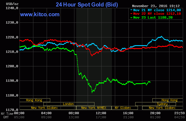 Giới đầu tư hoảng loạn bán tháo sau khi nhận thấy tin đồn Ấn Độ có thể áp lệnh cấm nhập vàng không còn là điều quá xa vời nữa mà có thể xảy ra bất cứ lúc sau động thái cấm lưu hành 2 đồng tiền có mệnh giá lớn nhất nước này: 500 và 1000 ruppee của thủ tướng Narendra Modi.