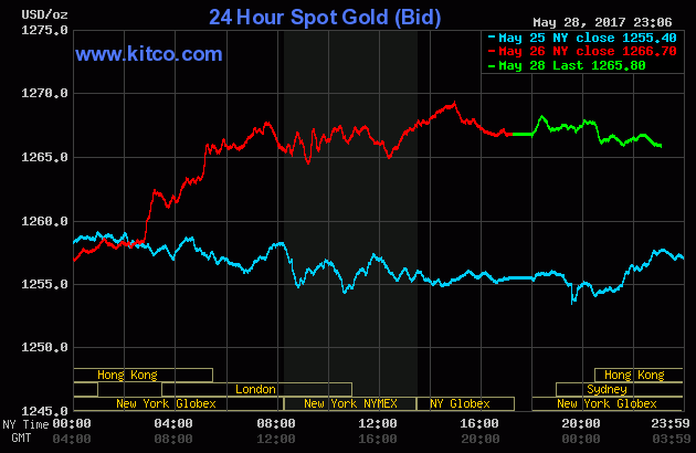 Trên thị trường thế giới, đầu giờ sáng nay (giờ Việt Nam), trên sàn Comex của New York giá vàng giao tháng 6 tăng thêm 0,82%,lên mức 1.266,65 USD/ounce.