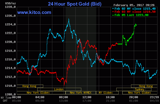 Thị trường vàng quốc tế cũng tăng giá trở lại. Giá vàng thế giới niêm yết trên sàn New York lúc 5h (giờ Việt Nam) là 1.220,50 USD/ounce, tăng 0,34%. Thị trường châu Á, giao dịch vàng trên sàn Thượng Hải niêm yết 1.207,13 USD/ounce.
