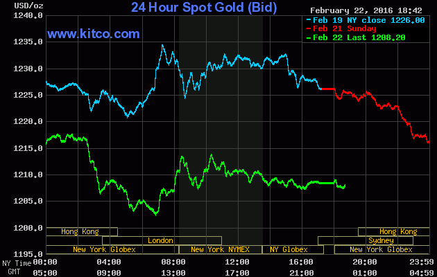 Tới đầu giờ sáng 23/2 (giờ Việt Nam), giá vàng thế giới giao ngay đứng ở mức gần 1.239 USD/ounce, tăng khoảng 11 USD so với cùng giờ phiên liền trước. Giá vàng giao tháng 4 trên sàn Comex New York cũng đã kịp vượt ngưỡng 1.240 USD/ounce.