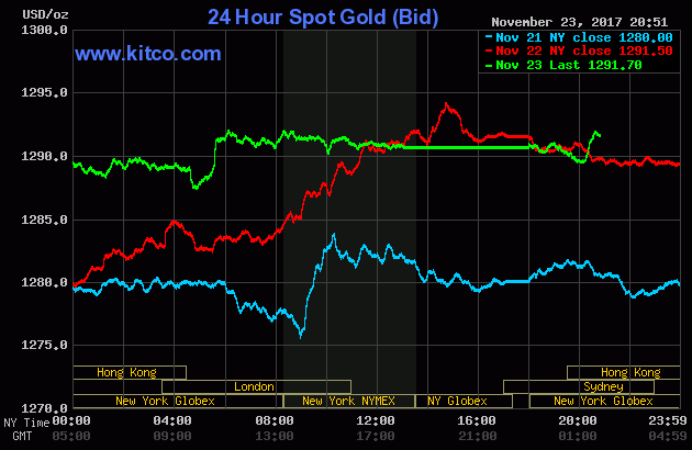 Giá vàng giao ngay trên sàn Kitco đang được niêm yết ở mức 1.291,7 USD/oz, tăng nhẹ 0,2USD, tương đương 0,02% so với chốt phiên trước.