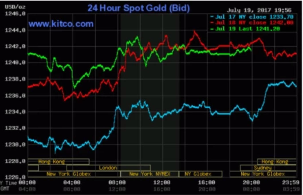 Ở thời điểm cập nhật lúc 7h00 sáng theo giờ Việt Nam, giá vàng giao ngay đang ở mức 1.241,20 USD/ounce, giảm nhẹ so với mức chốt phiên hôm thứ Ba là 1.242 USD/ounce.