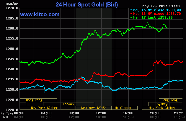 Theo đó, giá vàng giao tháng Sáu tăng 22,3 USD, tương đương 1,8%, lên 1.258,70 USD/ounce, mức cao nhất kể từ ngày 28/4. Giá kim loại này đã tăng 6 phiên liên tục – chuỗi tăng giá dài nhất kể từ đầu tháng 8/2016 – và đánh dấu phiên tăng giá mạnh nhất kể từ tháng 3/2016.