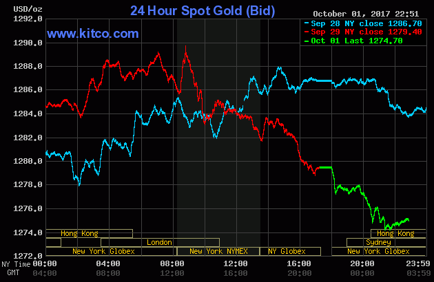 Nhìn lại thị trường vàng thế giới trong quý vừa qua, các nhà phân tích ước tính giá vàng giao ngay giảm khoảng 3% trong tháng Chín, mức giảm theo tháng mạnh nhất kể từ đầu năm tới nay. Tuy nhiên, trong quý III/2017, giá kim loại quý này vẫn tăng 3,3%, nhờ đà tăng trong tháng Bảy và tháng Tám, trước tình hình căng thẳng tại bán đảo Triều Tiên.