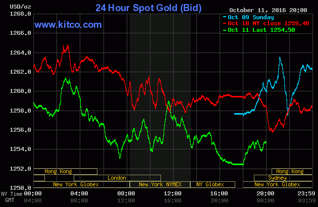 Sáng nay, 7h, theo giờ Việt Nam, giá vàng giao ngay trên sàn Kitco đứng tại 1.254,5USD/oz, giảm 0,4% so với chốt phiên trước.