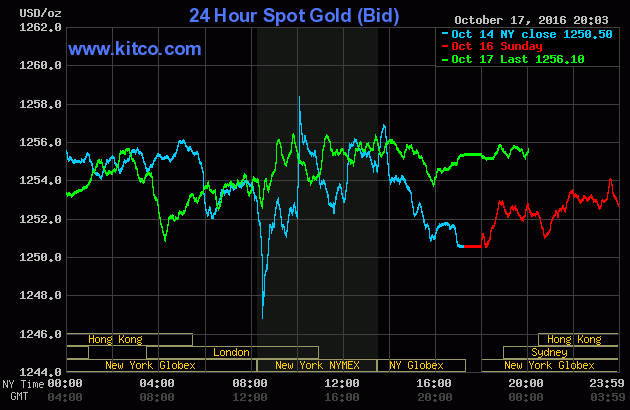 Sáng nay 7:00 theo giờ Việt Nam, giá vàng giao ngay trên sàn Kitco đứng tại 1.256,1USD/oz, tăng 0,44% so với chốt phiên trước.