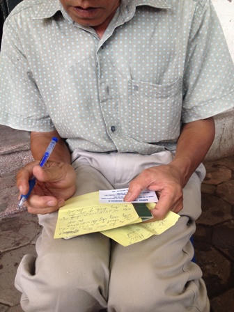 Đi xe chầm chậm qua ngã tư Phan Bội Châu-Trần Hưng Đạo, đến gần trụ sở của Ngân hàng Vietinbank, PV đã thấy các “cò” “nhao nhao” ra vẫy tay ra hiệu cùng với những lời mời chào: “Mua gì em ơi, vé hay hóa đơn?”. Lắc đầu, PV đi tiếp, liên tục là những lời mời chào như vậy. Thấy PV đi chậm hơn, một “cò” là người đàn ông trung tuổi bước ra đứng trước xe và hỏi “ Vé hay hóa đơn hả em? Vào đây ngồi uống nước cho đỡ nắng rồi thích mua gì cũng có”. Bắt được khách, “cò” này bắt đầu chèo kéo “Vé tàu hay vé máy bay, hóa đơn đỏ hay hóa đơn bán hàng của bên thuế?” “Giá cả như thế nào”, PV hỏi, “Giá mềm thôi, vé tầu là 50 nghìn 1 vé, vé máy bay thì 200 nghìn, hóa đơn thì 200 nghìn 1 cái”.