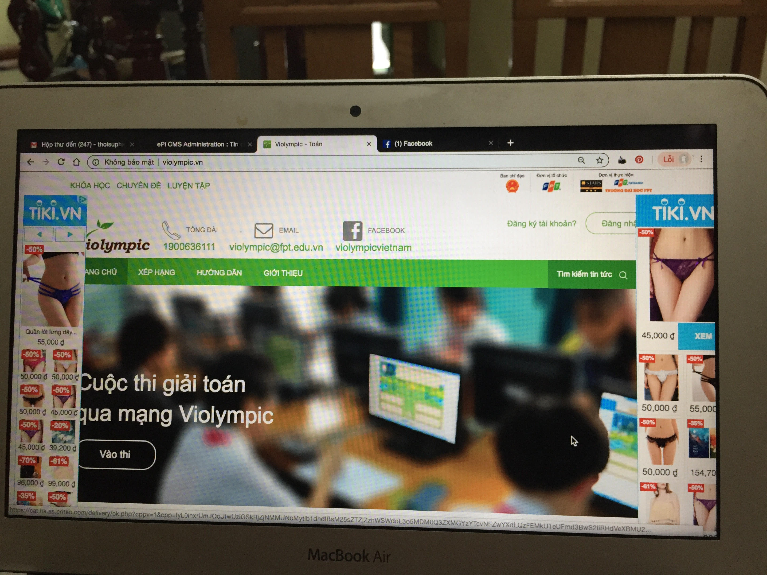 Thế nhưng, điều khó hiểu đối với các bậc phụ huynh là khi con em vào trang web chính thức của cuộc thi này để làm bài thi thì ôi thôi, cơ man nào là các loại quảng cáo nội y, quần áo, bất động sản cứ thi nhau tràn vào mặt các em. Trang chủ của website được đơn vị quản trị khai thác triệt để để đặt quảng cáo tự động và đây là lý do khiến cho các thông tin quảng cáo sản phẩm dành cho người lớn cứ tràn vào không gian dành cho trẻ nhỏ một cách thiếu kiểm soát.