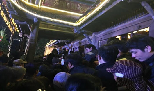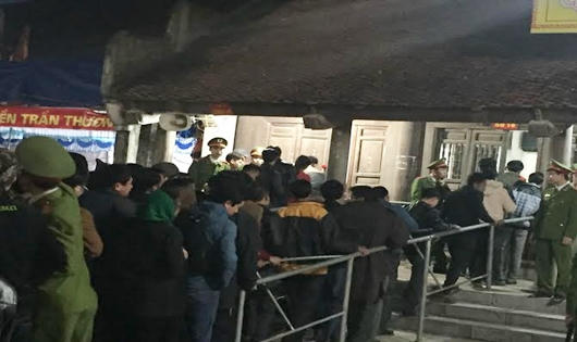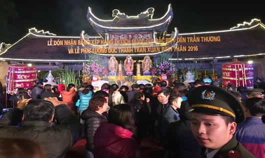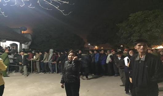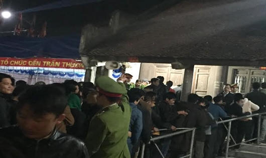 Lượng du khách đổ về đền Trần Thương vào đêm hôm qua rất lớn. Ban tổ chức đã rất vất vả trong điều tiết giao thông và phân tán lượng người vào điện chính.
