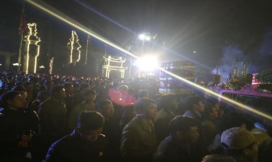 (PLO) - Đêm 21/2, hàng nghìn người đổ về đền Trần Thương, thôn Trần Thương, xã Nhân Đạo, huyện Lý Nhân (Hà Nam) chờ được phát lương theo tục lệ.