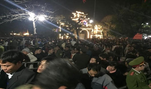 | Đến hơn 1h đêm, lượng người vẫn đổ về không ngớt. Đại diện ban tổ chức cho biết không lường được lượng khách năm nay tăng vọt (Ảnh: Q.M) |